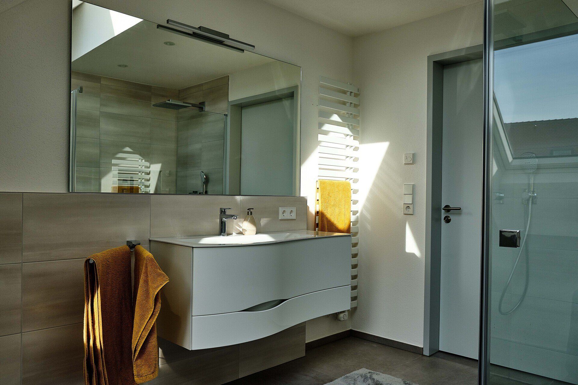 - große, begehbare Dusche mit Raindance-Duschkopf